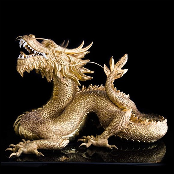 Sculpture dragon in porcelain and gold-plated 24k gold 196-Gold Dragon