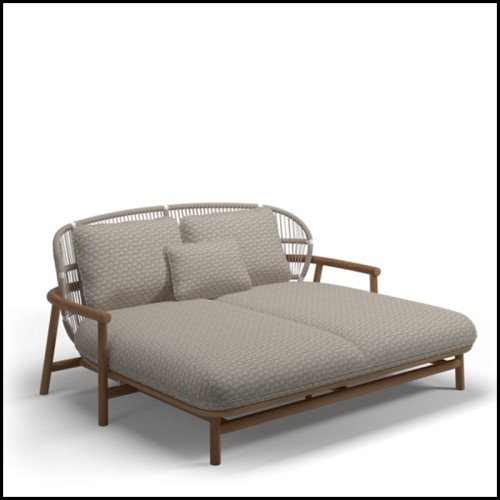 Double sun loungers can measure up to 118 inches in diameter, providing an ideal relaxation space for two people. Additionally, the thickness of the mattresses ensures maximum comfort. The seating fabrics come in a variety of colors, allowing them to harmonize with any decor style. Moreover, the modular design of the products allows for configurations to be adapted according to needs: reclining or sitting positions, multi-position adjustable backs, and integrated side tables for added practicality.
