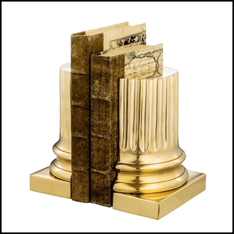 This golden bookend, available in polished brass, nickel or bronze,