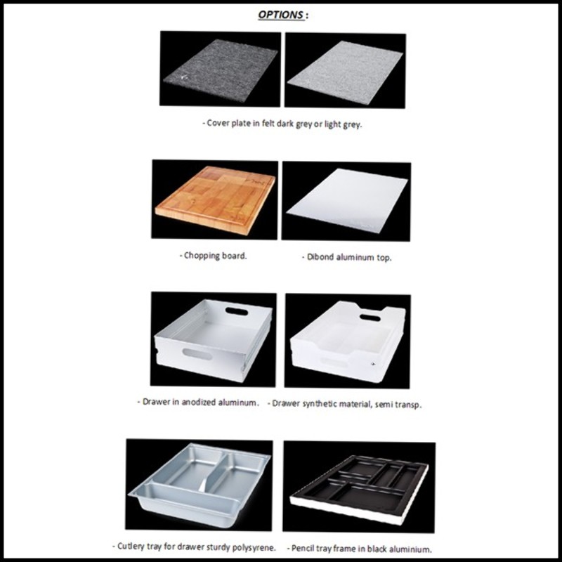 - Cover plate in felt dark grey or light grey, price: 30,00 €