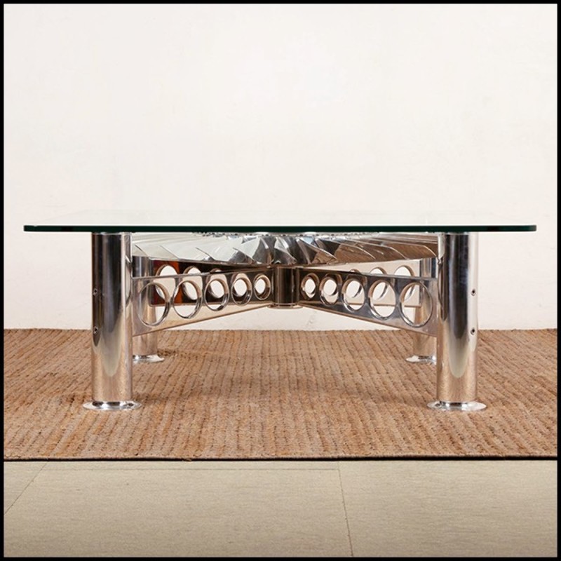 glass top on a polished aluminium base. With clear glass top, 15mm