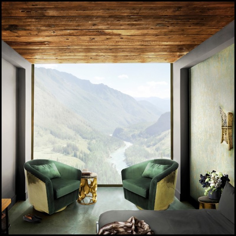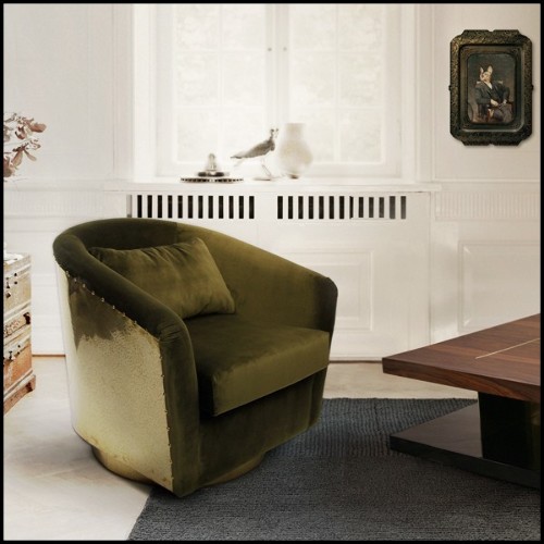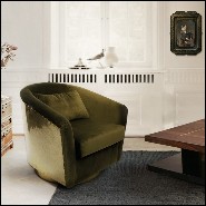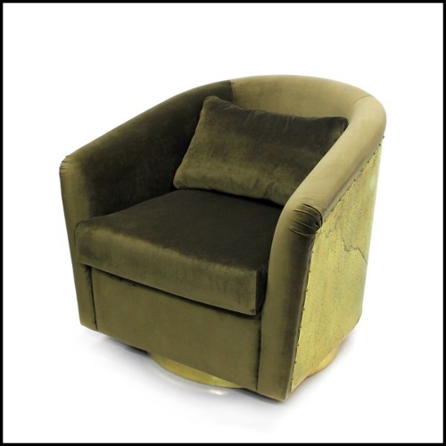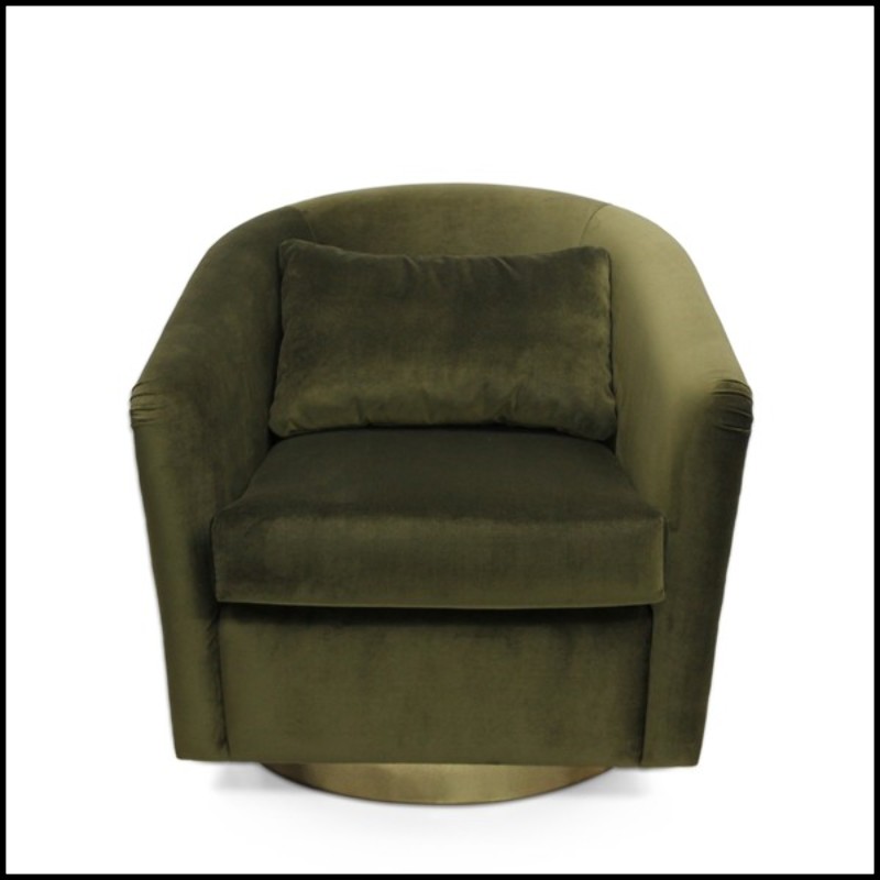 Armchair Natural Green, with green velvet fabric on swivel base.