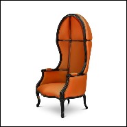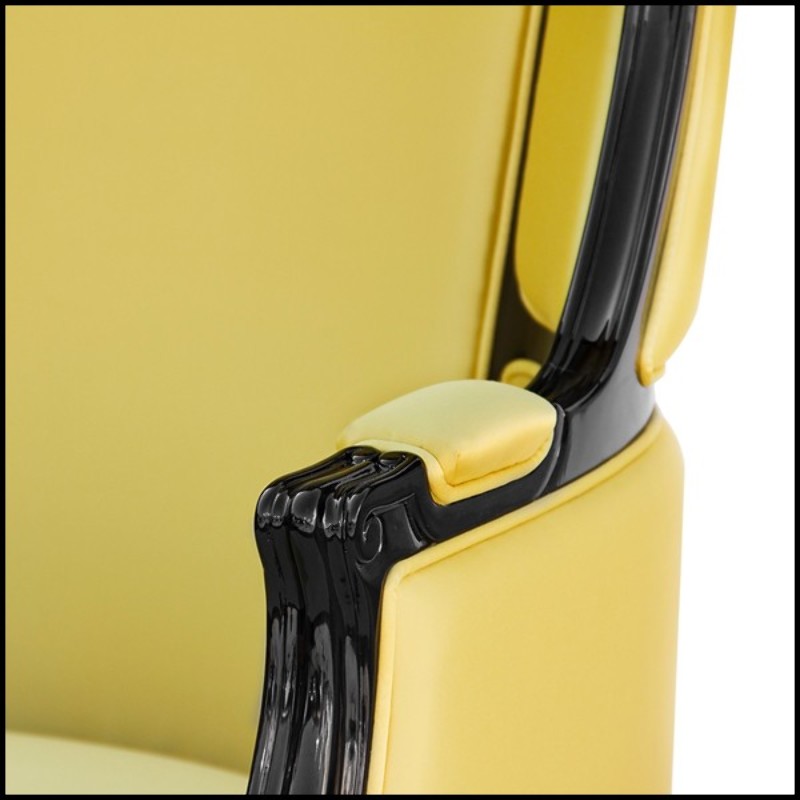 Armchair tresor with high gloss black lacquered structure and fabric in satinated cotton 155-Tresor