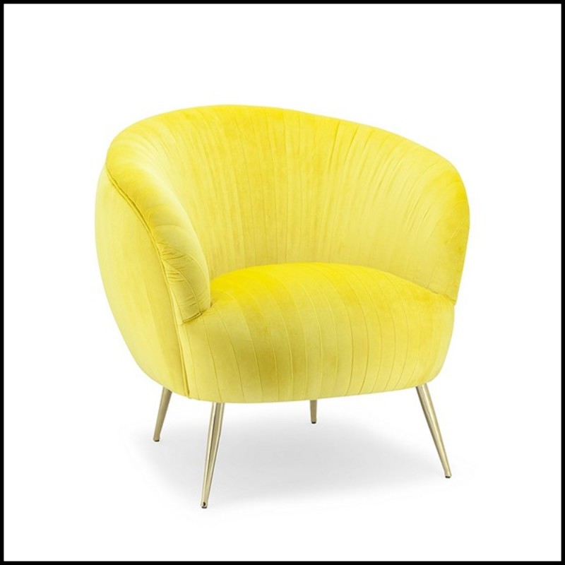 Armchair upholstered in yellow or blue soft velvet or black soft velvet with structure in solid wood 162-Diana