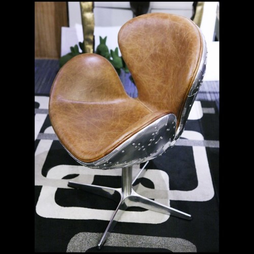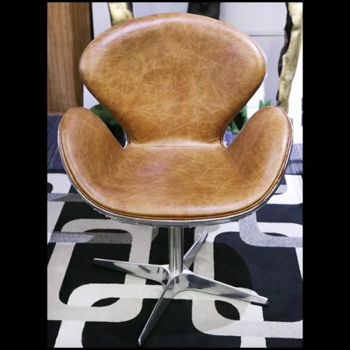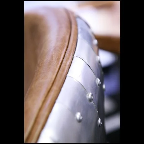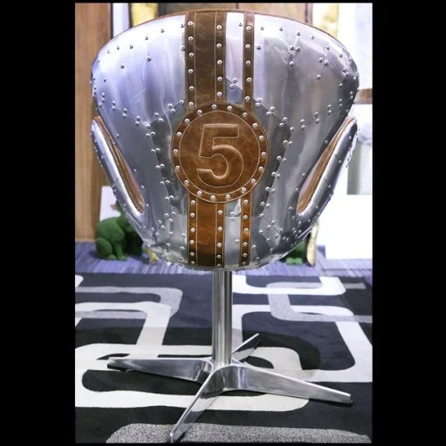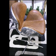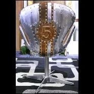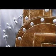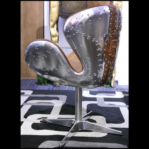 Armchair swivel medium in polished riveted aluminium and brown leather PC-Number 5 Brown M