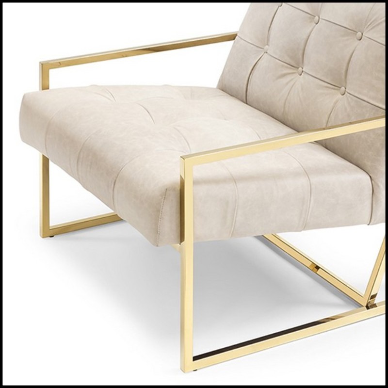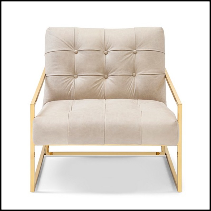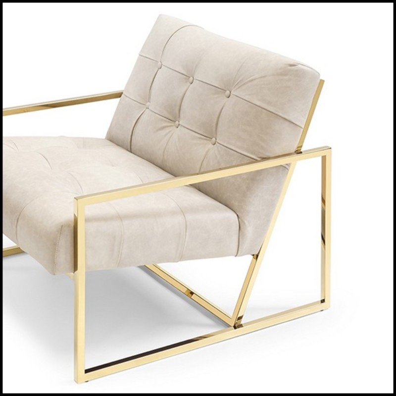 Armchair with structure in gold finish and covered with cream leather 162-Matrix