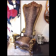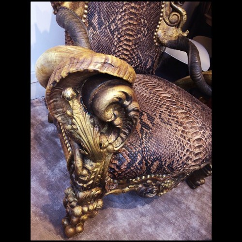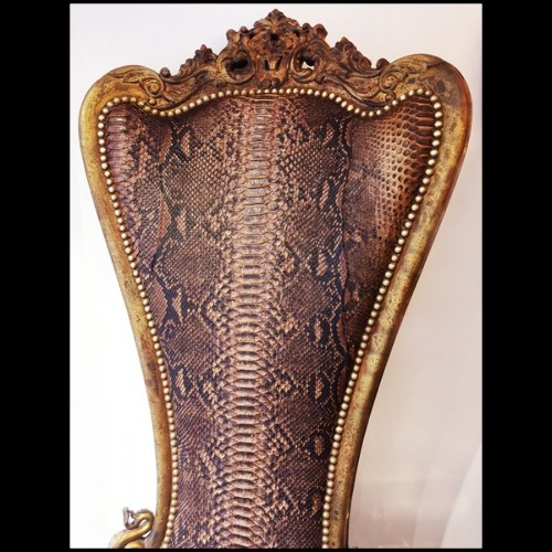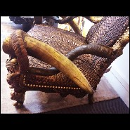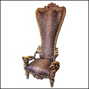 Throne in solid wood with real python skin and real Aries Zebu and Kudu horns PC-Python