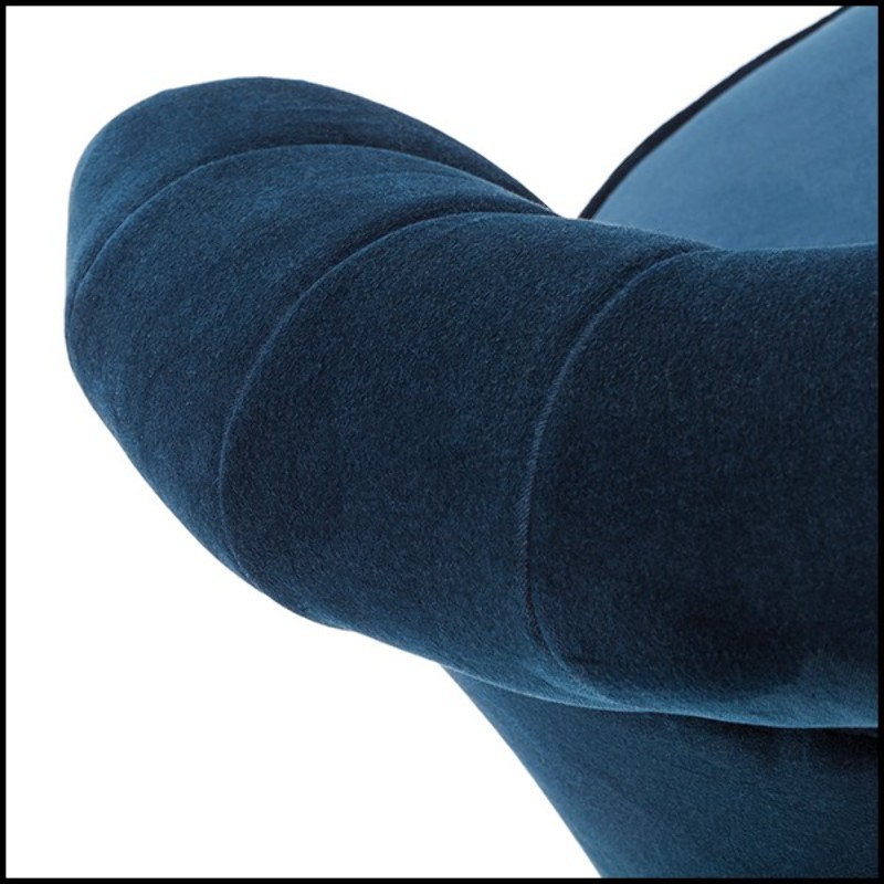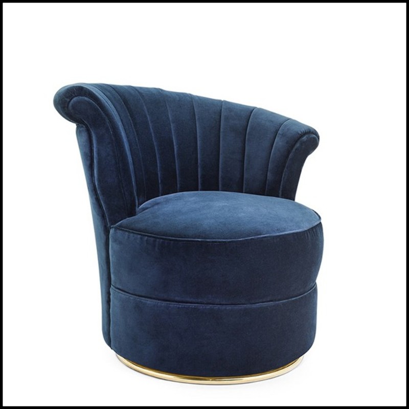 Armchair with blue velvet or red velvet fabric with gold finish round frame 162-Blue Wing Right