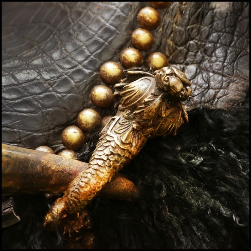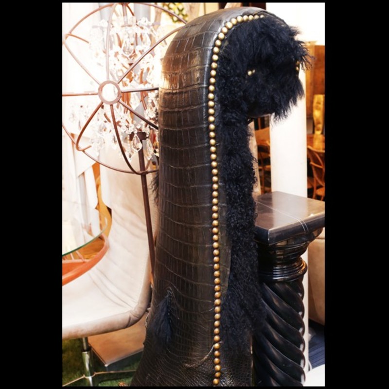a real black tinted alligator skin. With two real Zebu horns.