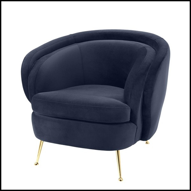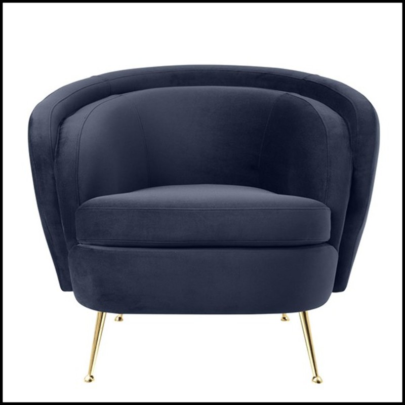 Savona Midnight blue velvet fabric and brass legs.