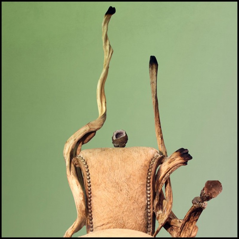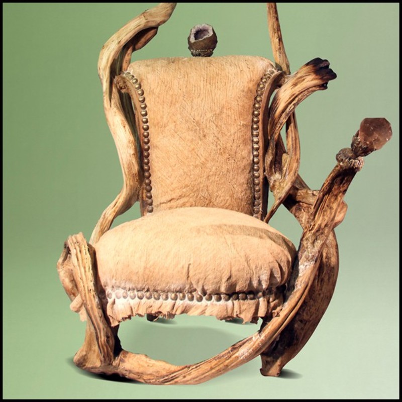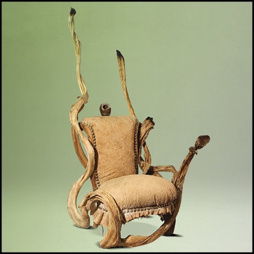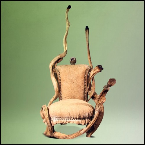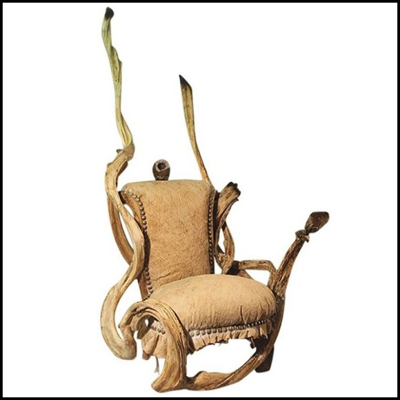 Armchair Guru High Amethyst, with structure in solid mahogany wood from Borneo, with solid lianes.