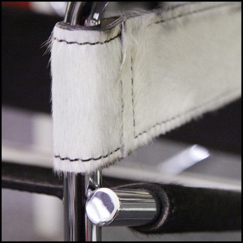 Armchair with polished stainless steel structure and black and white natural cowhide PC-Wassily Cowhide 1