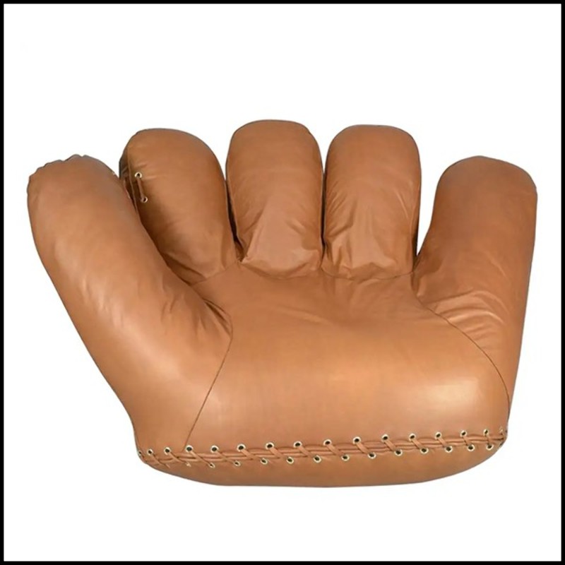 Armchair Baseball Glove Joe, in natural genuine leather in cognac finish