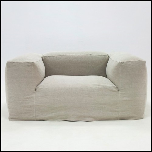 Armchair with solid wood structure covered with removable fabric in cream color 176-Phantom