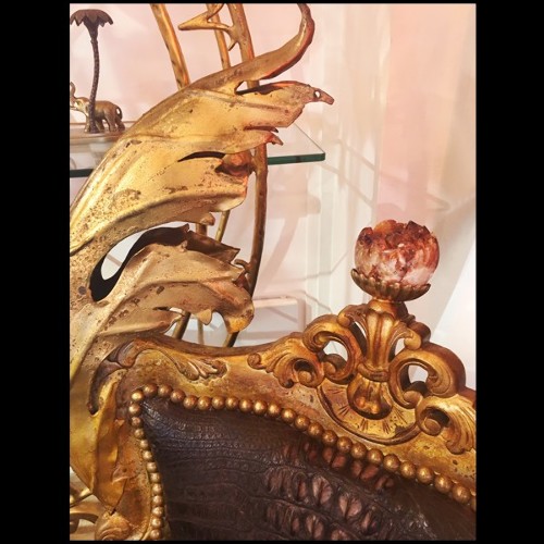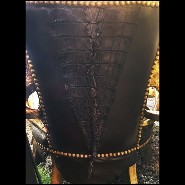 Armchair with structure in solid beech wood and natural black tinted alligator skin PC-Croco Black Bronze