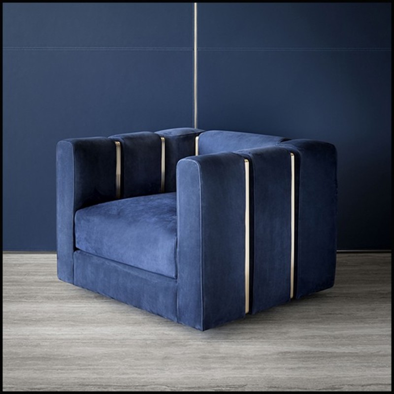 Armchair covered with Italian high quality blue velvet fabric and with polished brass 150-Virginia
