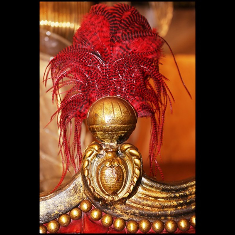 crocodile skin, genuine red leather, kudu and buffalo horns, as well as ostrich feathers