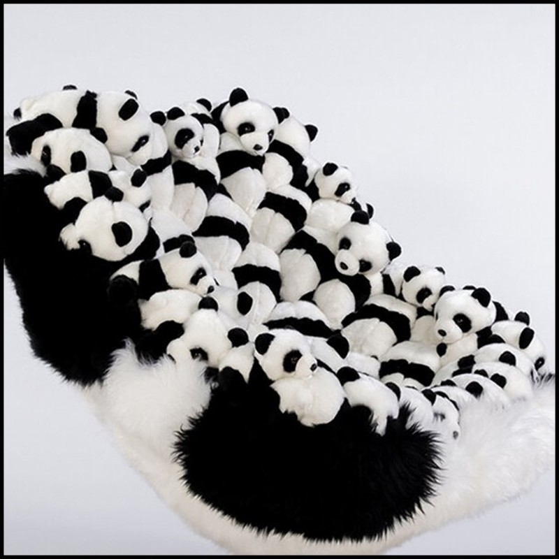 Armchair Panda, with small Pandas plushes on all the back seat.