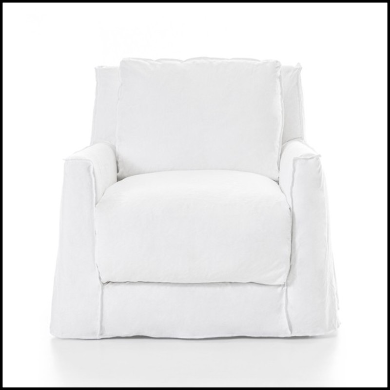 A backrest cushion in channeled goose duvet and polyester fibers.