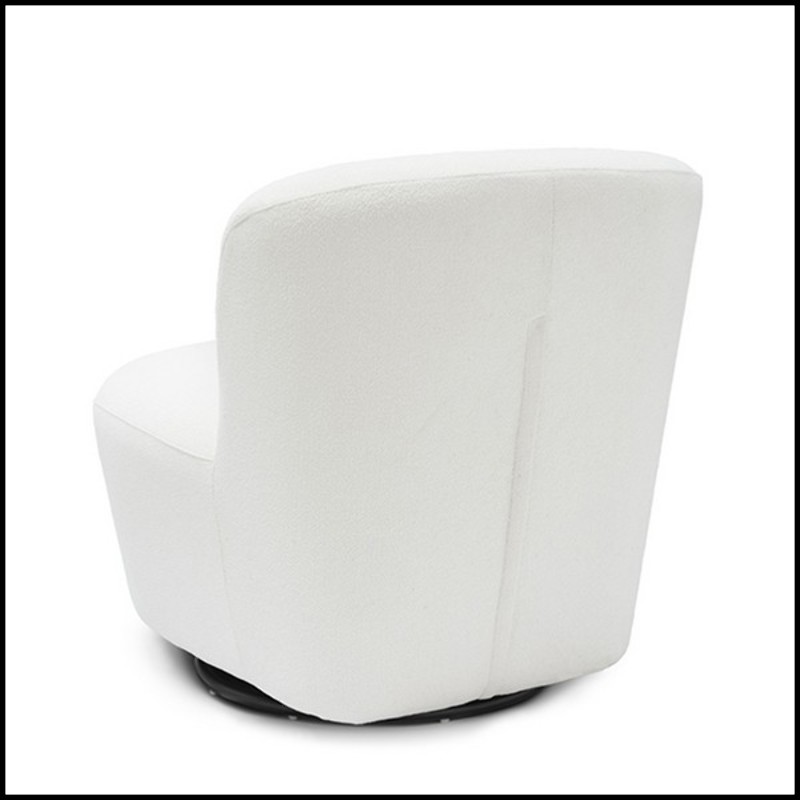 upholstered and covered with bouclé cream fabric, on metal swivel base.