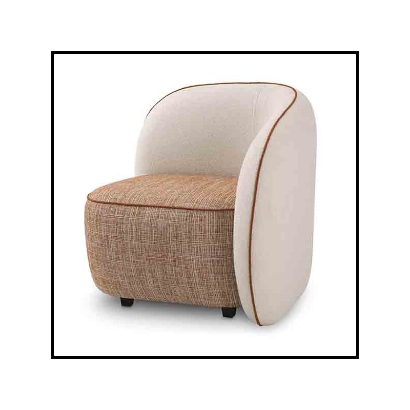 Covered in cream fabric, vintage orange fabric and orange piping.