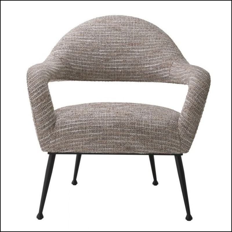 The Armchair Lombardi Beige has black legs and a beige fabric covering,