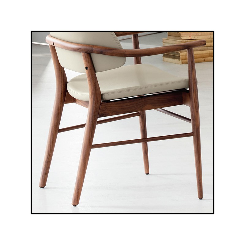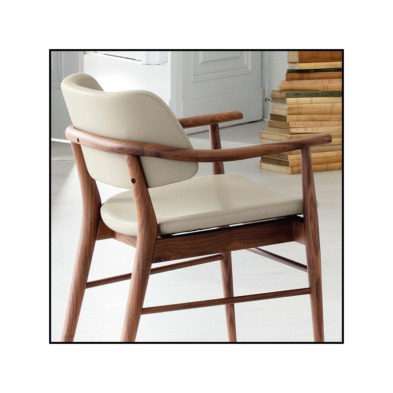 Armchair Lizia with all structure and armrests in solid walnut wood,