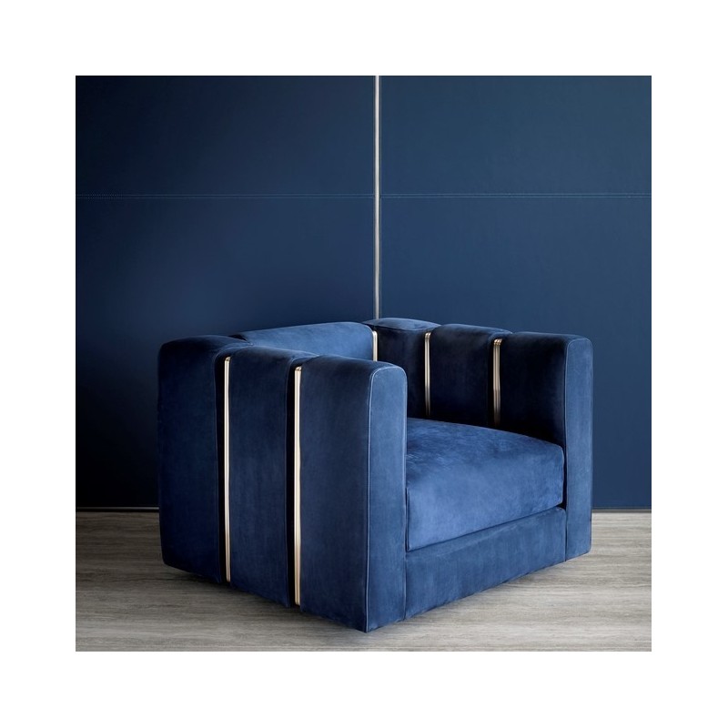 The Club Armchair by Rugiano is designed for exceptional comfort in your living room. The brushed brass color gives an elegant touch to this luxury armchair.