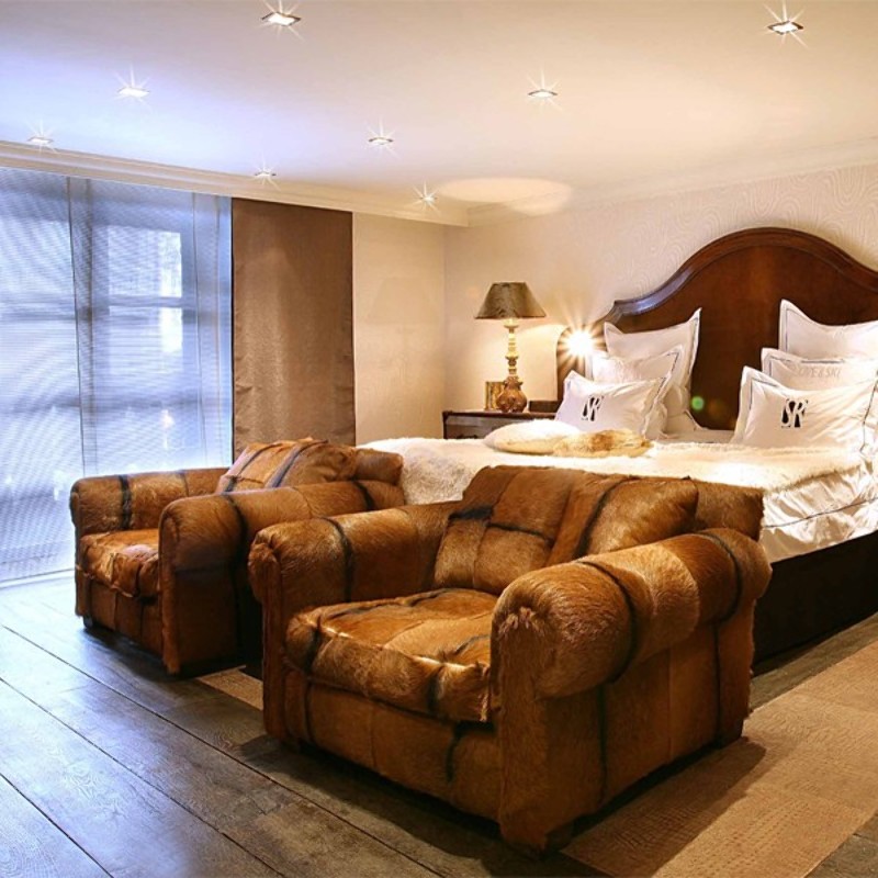 Back and armrests made with elastic straps and HR polyurethane foam.