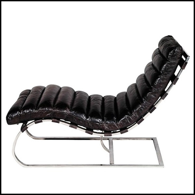Lounge chair in brown or black genuine leather on polished stainless steel base structure PC-DayBed Set