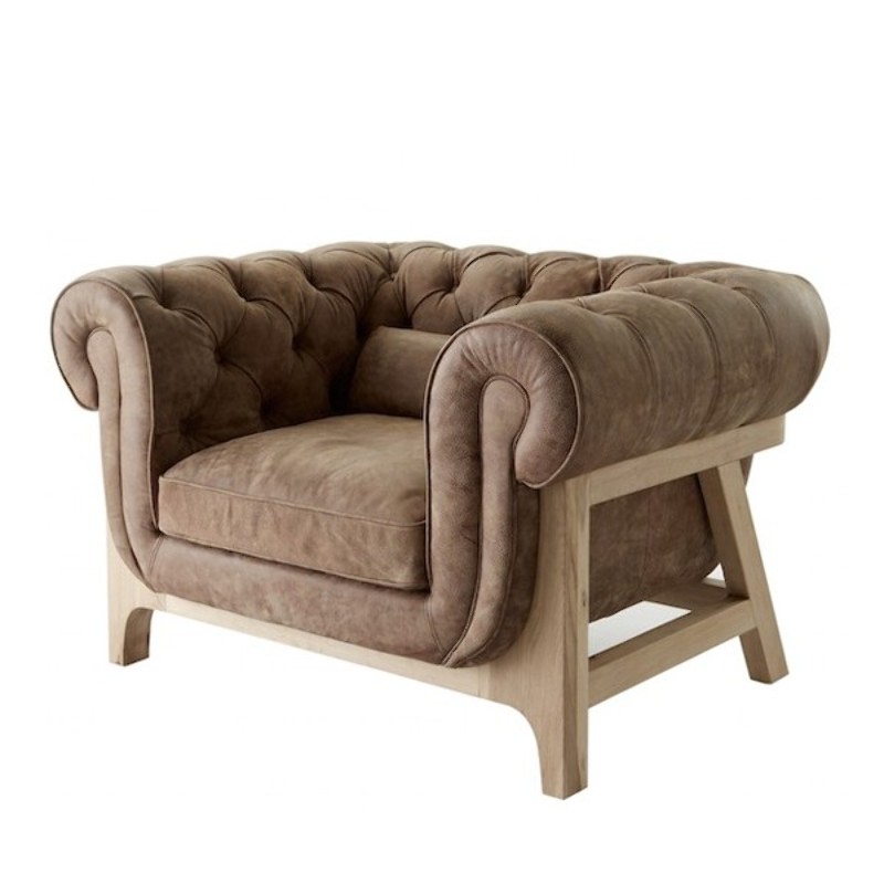 Armchair leather and oak structure, 9 finishes available 31-Cocoon Chesterfield
