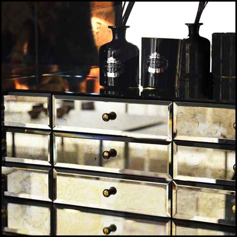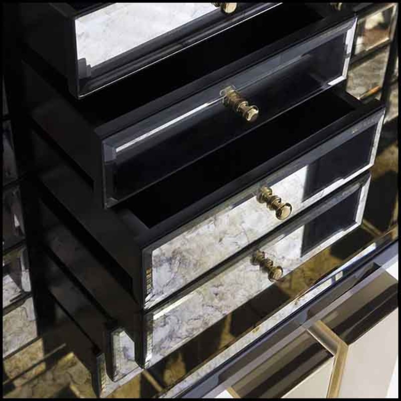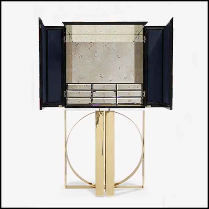 Polished brass structure, inside composed with drawers covered with mirror glasses.