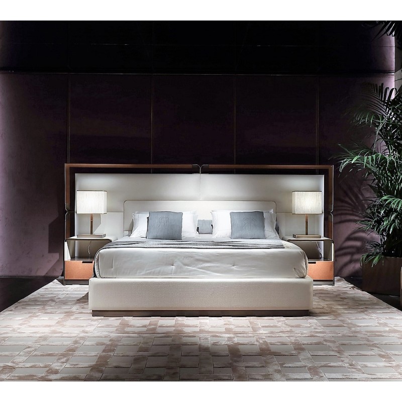 The Big Grace Beds by Rugiano combine the delicacy of luxury bedding with the robustness of bronzed brass, perfect for an elegant bedroom.