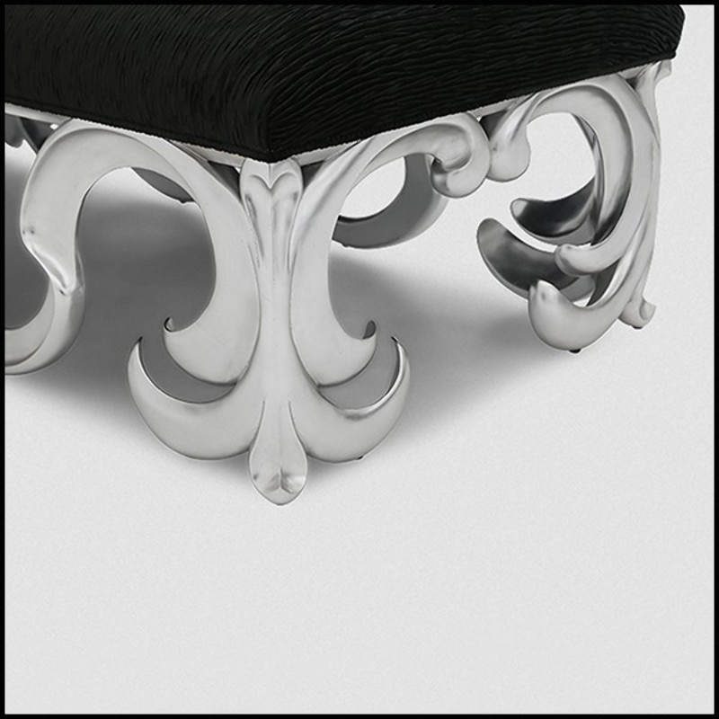 wood in silver leaf finish. Seat upholstered and covered
