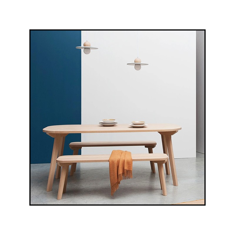 Bench Woody Oak features a full structure in solid oak in polished raw finish.