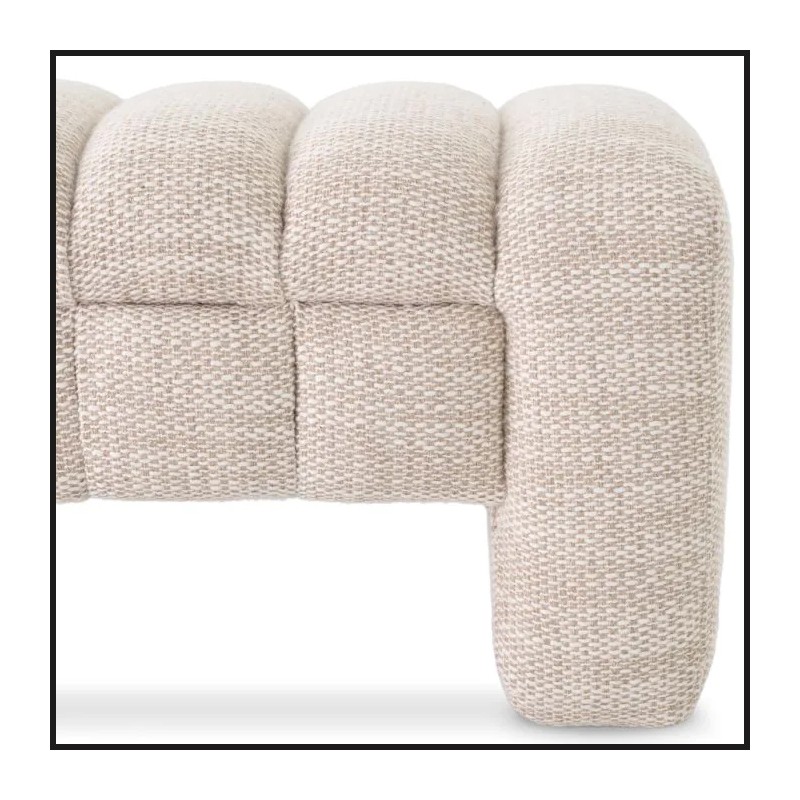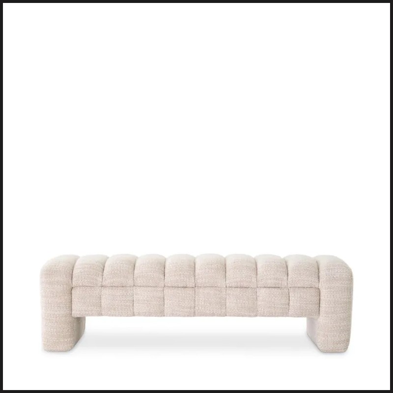This magnificent plywood bench, upholstered in Skyward sand fabric,