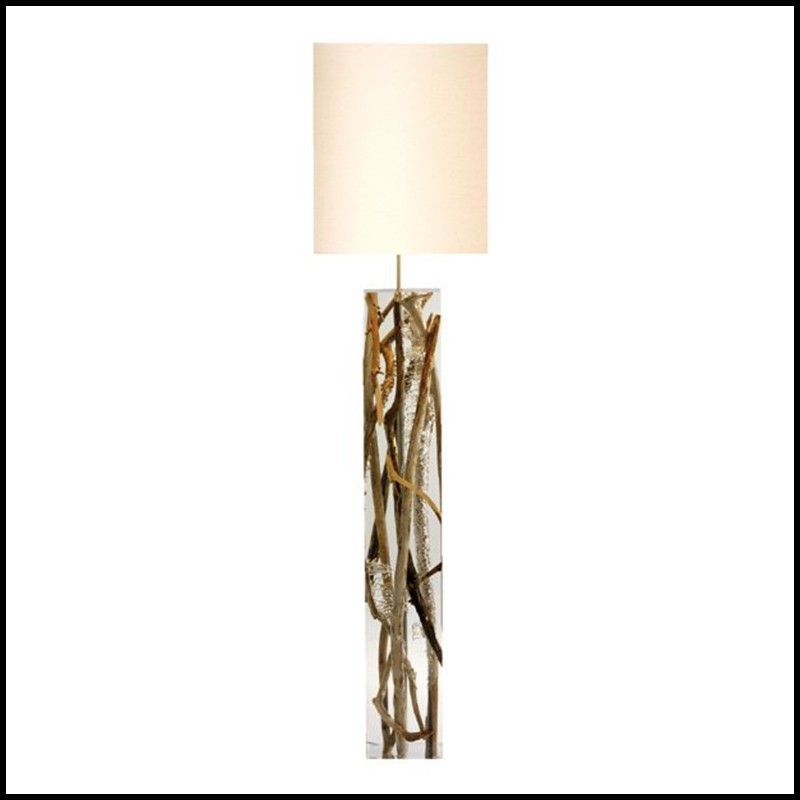 Floor Lamp Kisimi with an acrylic glass structure and driftwood branches.