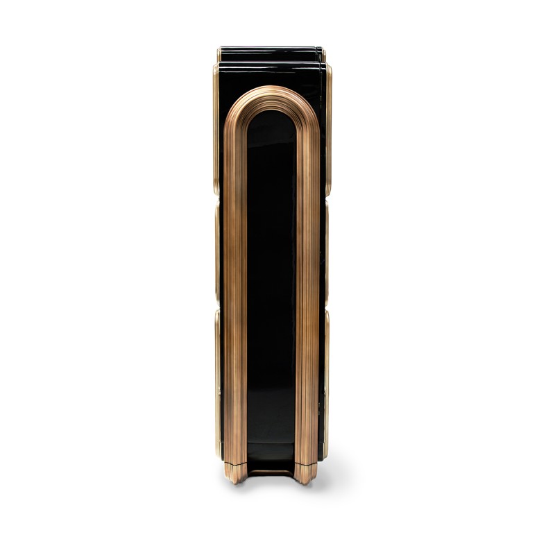 The Oblong Cabinet by Boca Do Lobo brings an air of sophistication to any room, perfect for an entryway or living area. It is crafted from wood and metal, with mirror accents for a luxurious look.