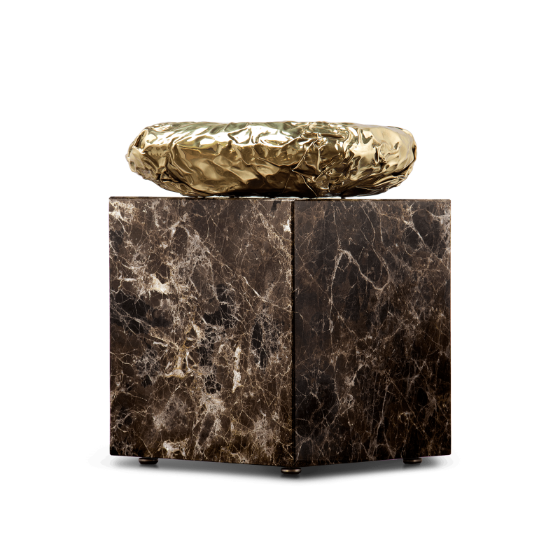 The Stonehenge Sidetable by Boca Do Lobo is a perfect addition to any living room or entry hall, with its unique design in marble and hammered brass.
