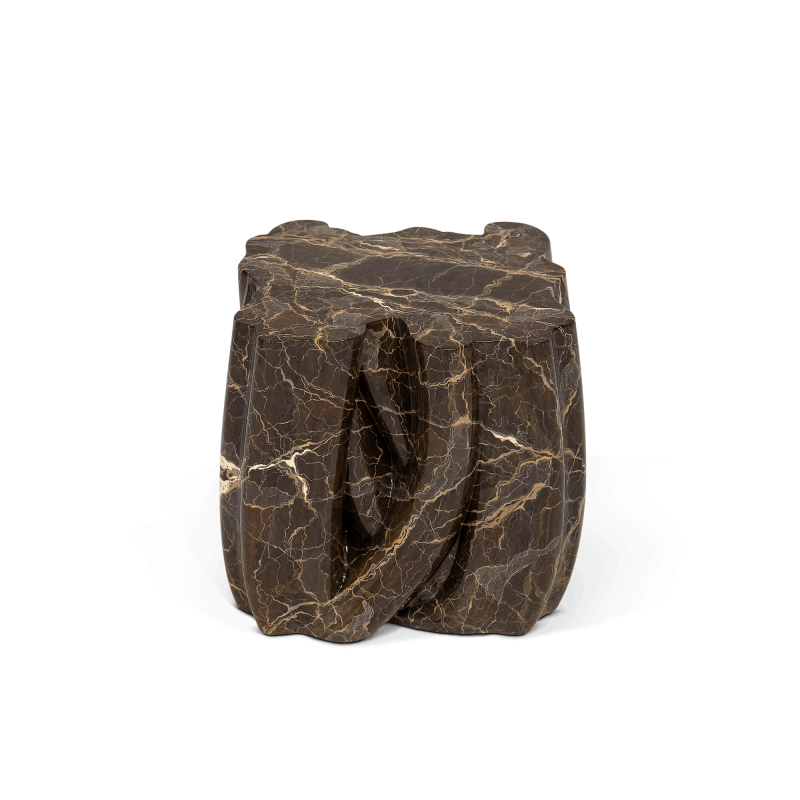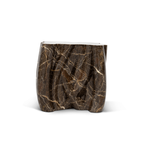 The Monochrome Sidetable by Boca Do Lobo is a perfect addition to your living room or entryway, with its unique faux marble design and fiberglass material, offering an elegant touch to any space.
