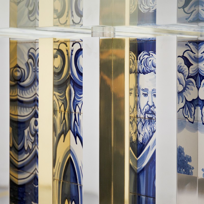 The Heritage Dining Table by Boca Do Lobo is a perfect combination of elegance and refinement for a reception area or living room. This dining table is made with hand-painted tiles, wood, polished brass, and a beveled mirror.