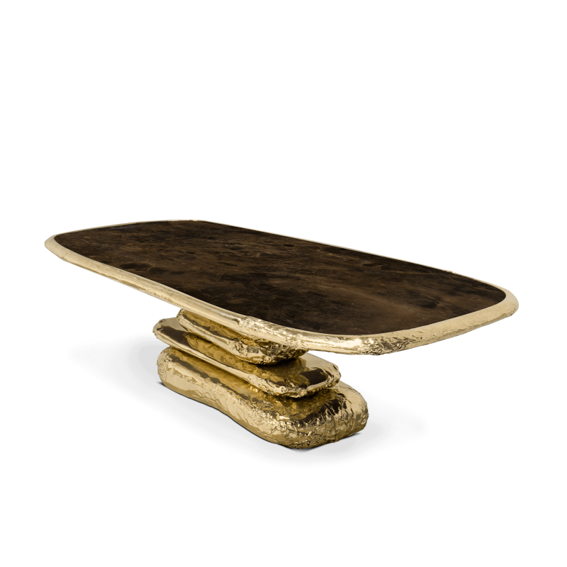 The Stonehenge Dining Table by Boca Do Lobo is a masterpiece that embodies elegance and refinement, designed for the most sophisticated dining rooms. With its primary material being marble and accents of hammered brass, this dining table makes a statement in any space.