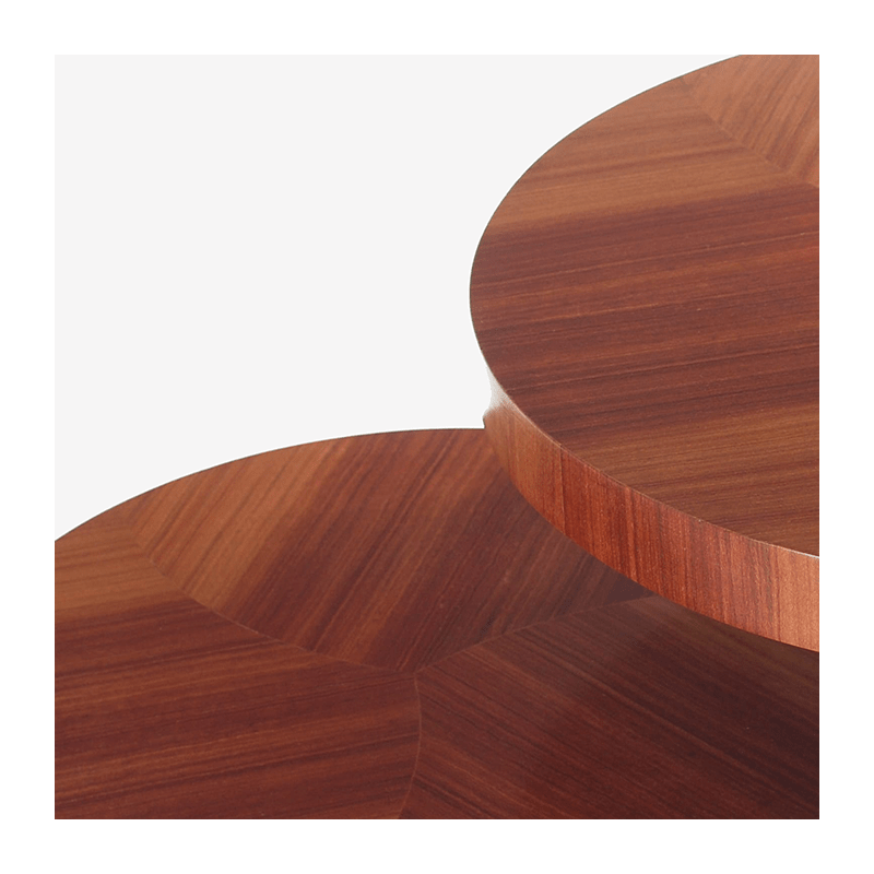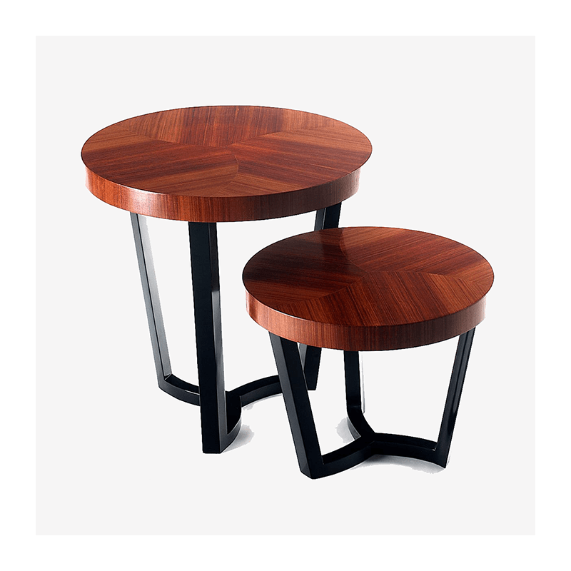 The round shape of this coffee table Sulivan gives a sophisticated touch to the room, while its comfortable height allows for easy seating. The materials used, such as palisander veneer and black lacquered wood, add a touch of luxury to the decor.