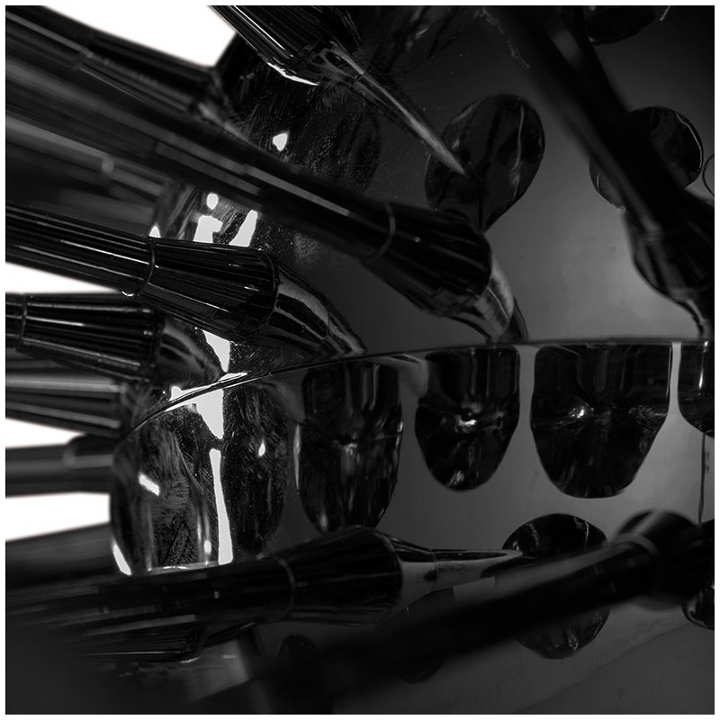 The gold-plated brass and black lacquered metal give this suspension lamp an elegant appearance, while its unique shape creates a minimalist and industrial ambiance. The colors black, copper, and gold add a touch of luxury to this piece.