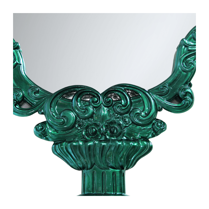The silver leaf used in this mirror adds a dimension of luxury, while the electric green translucid creates a unique and captivating ambiance. The imposing dimensions (W 105 CM | D 9 CM | H 222 CM) make it a central decorative element for any space.