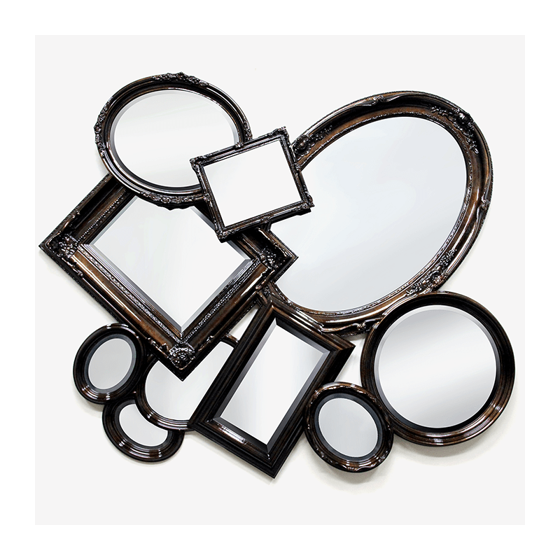 Material : set of ten classic overlapped mirror with different sizes and frames finished in pepita leaf, finished in high gloss varnish