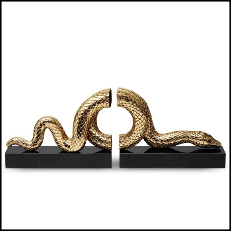 Bookend set in gold plated 24 karat or platinum plated on black marble base 172-Snake Gold