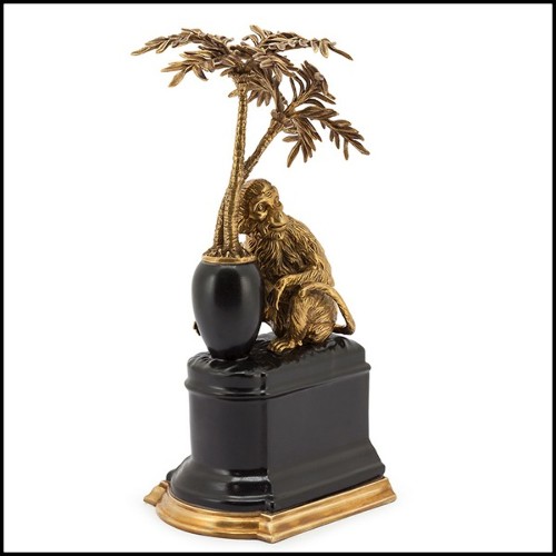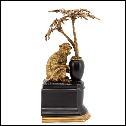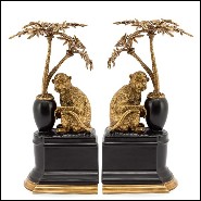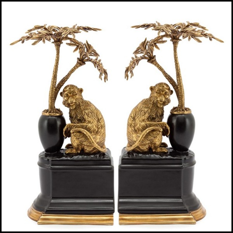 Bookends set of 2 in solid bronze and with base in hand painted porcelain 162-Monkeys and Palms