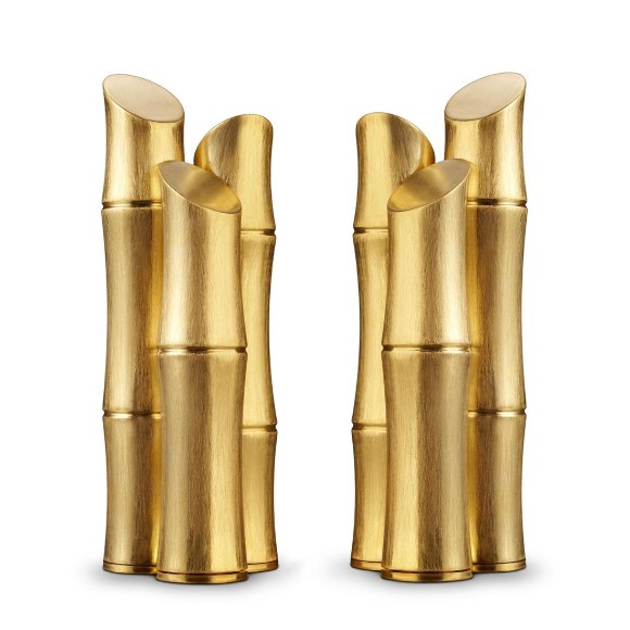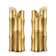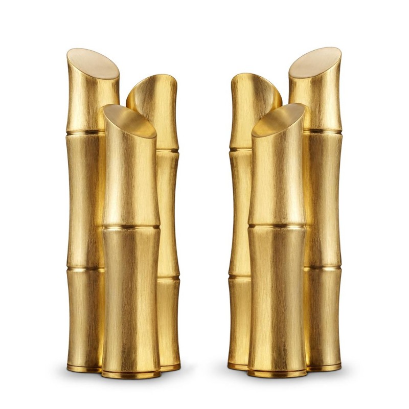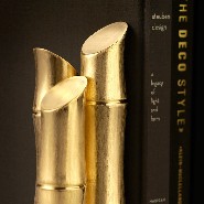 Bookends in polished stainless steel gold plated 24 karat 172-Bambou Set of 2