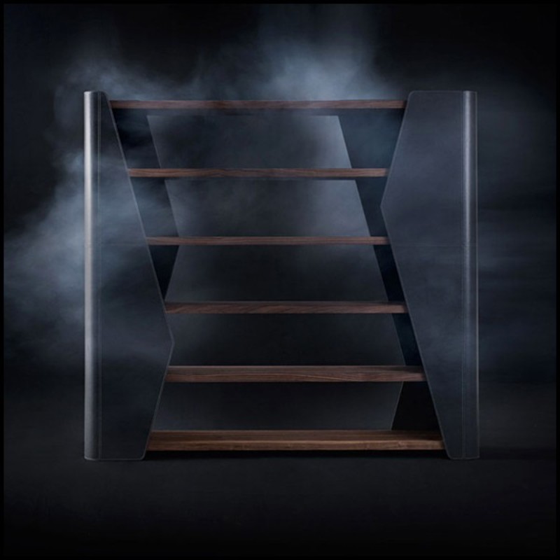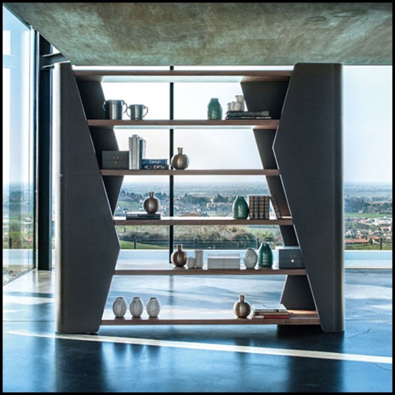 Bookshelves made with solid walnut wood covered with genuine leather 154-Racing